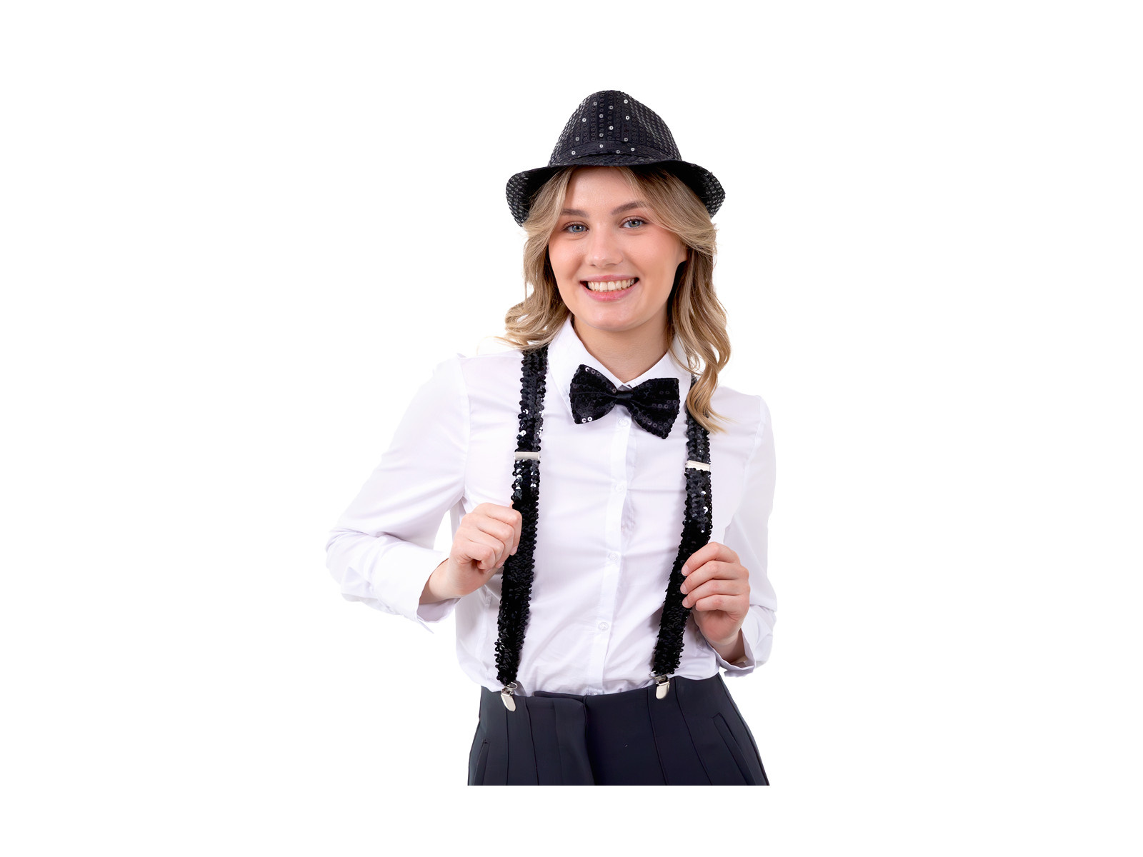 Mucha cekinowa czarna - 7 x 12 cm - 1 szt.
