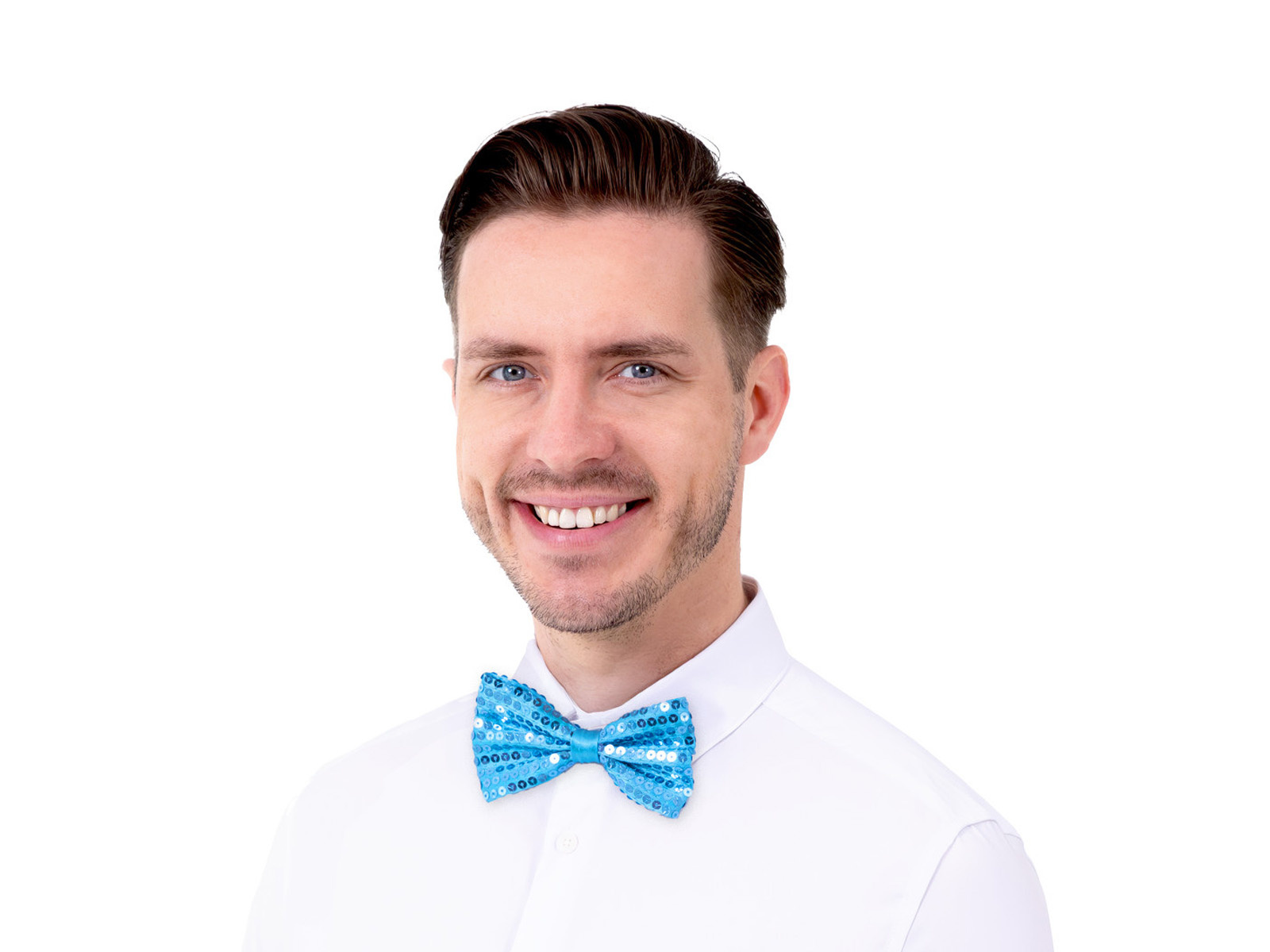 Mucha cekinowa niebieska - 7 x 12 cm - 1 szt.