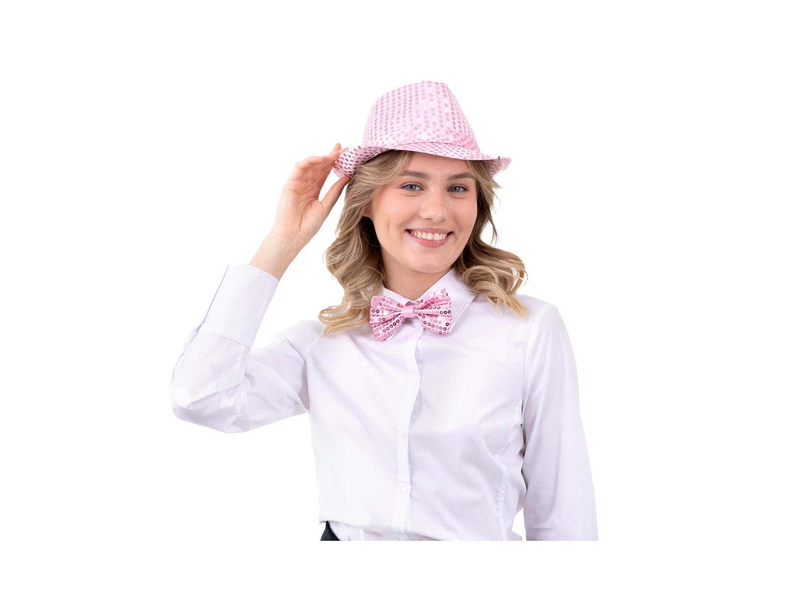 Mucha cekinowa różowa - 7 x 12 cm - 1 szt.