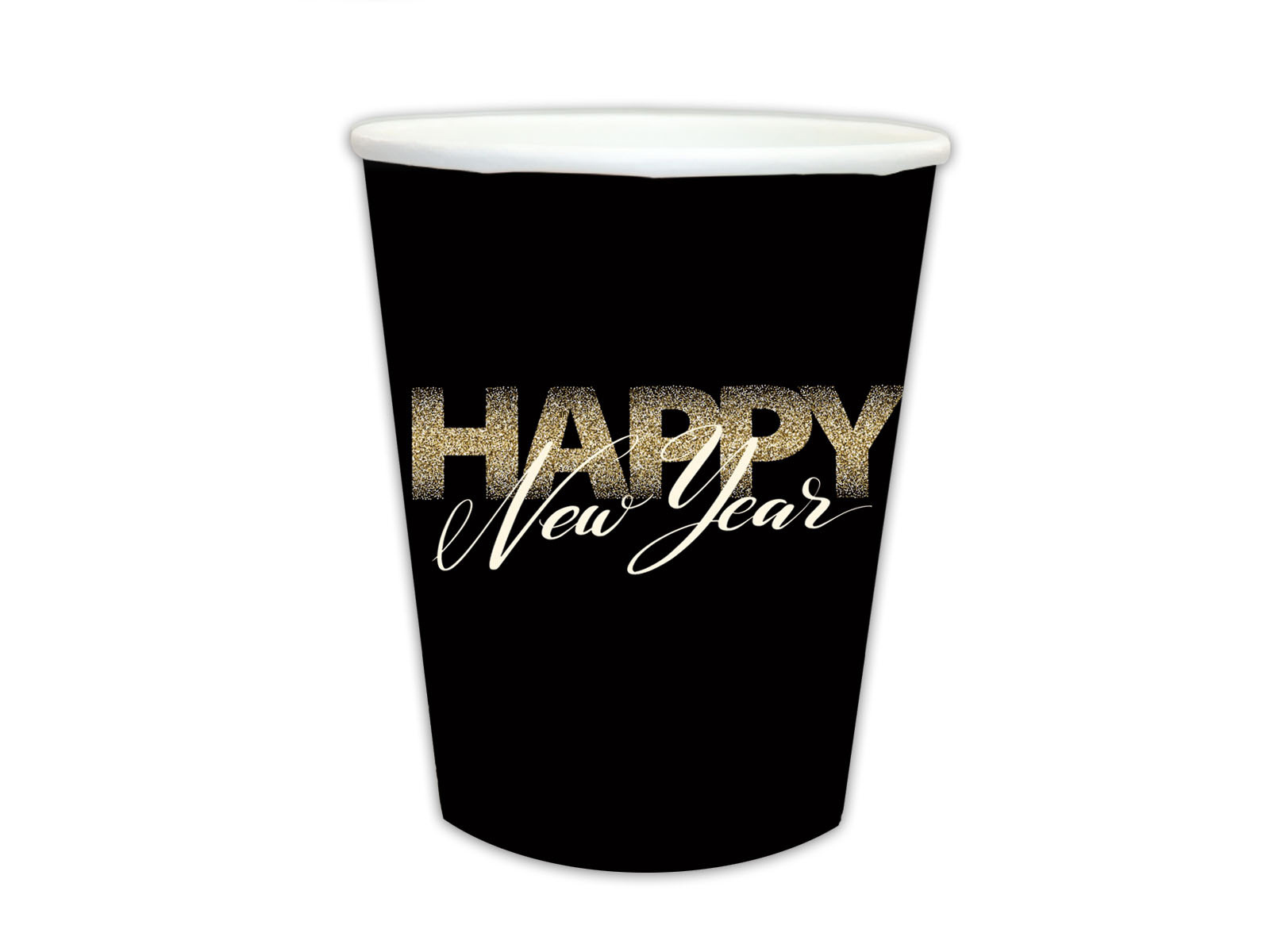 Kubeczki papierowe na Sylwestra Nowy Rok Happy New Year - 250 ml - 6 szt.