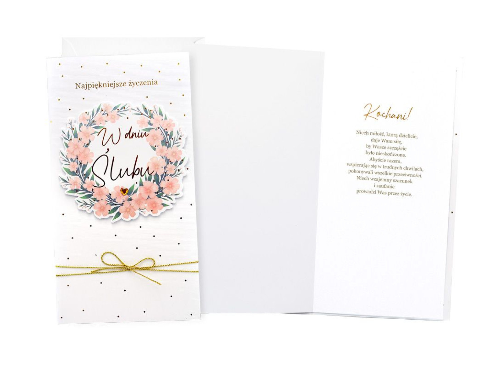 Kartka prezentowa na ślub z kopertą - 11,4 x 21,5 cm - 1 szt.