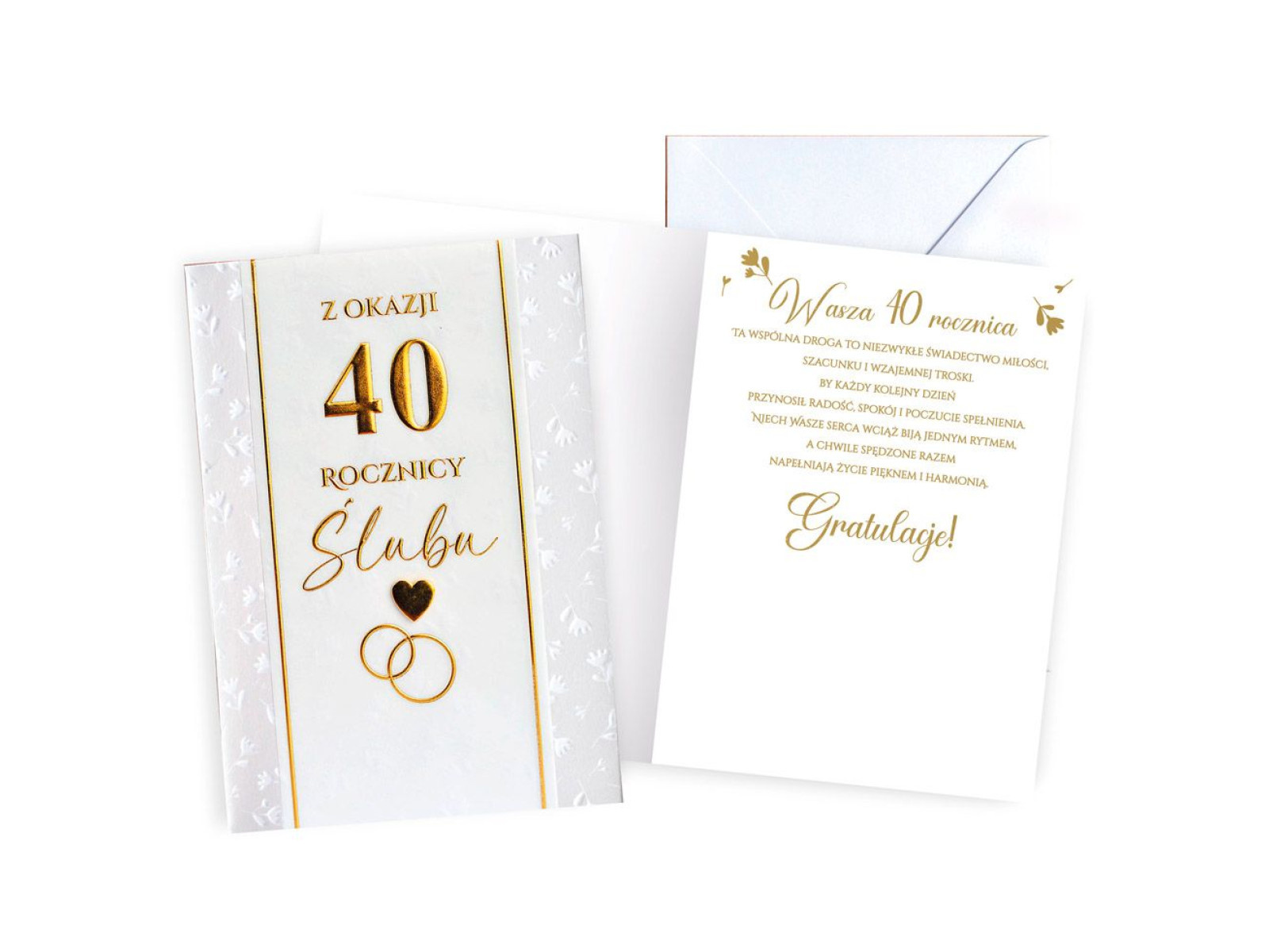 Kartka prezentowa na 40 rocznicę ślubu z kopertą - 16.6 x 11.7 cm - 1 szt.
