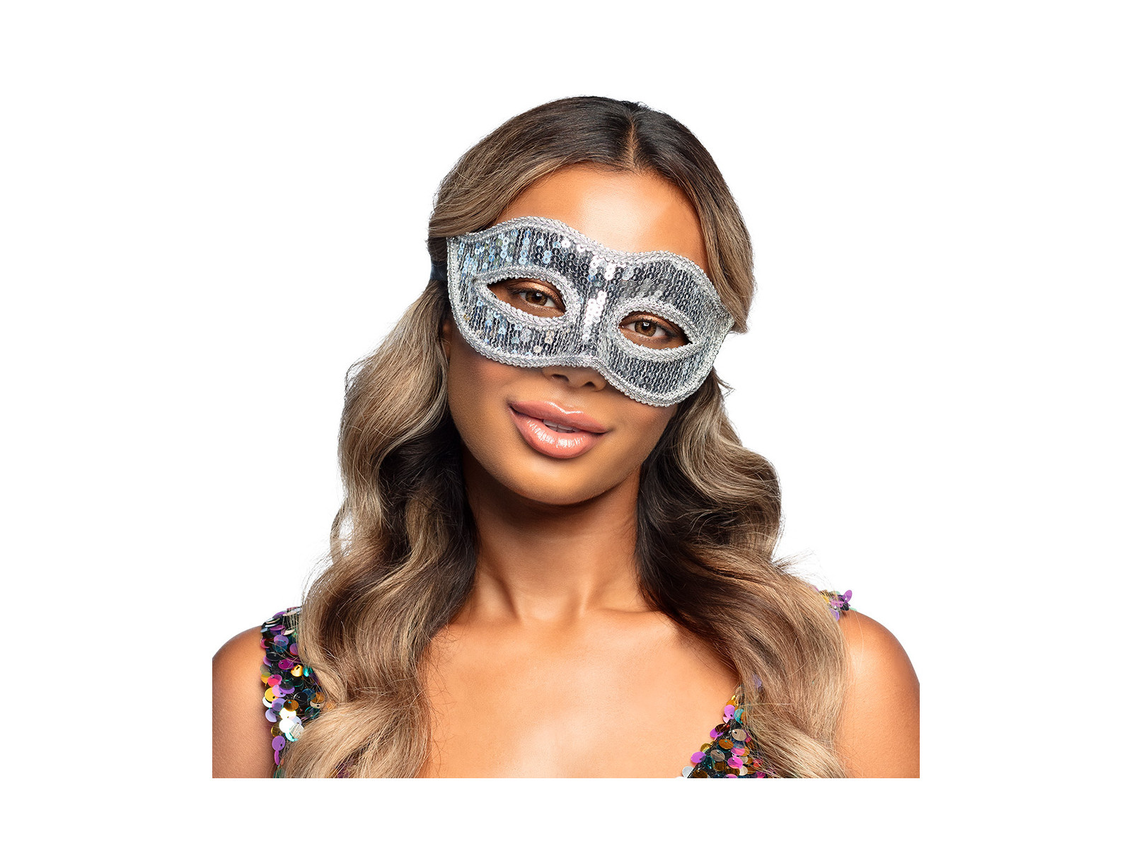 Maska Wenecka cekiny srebrna