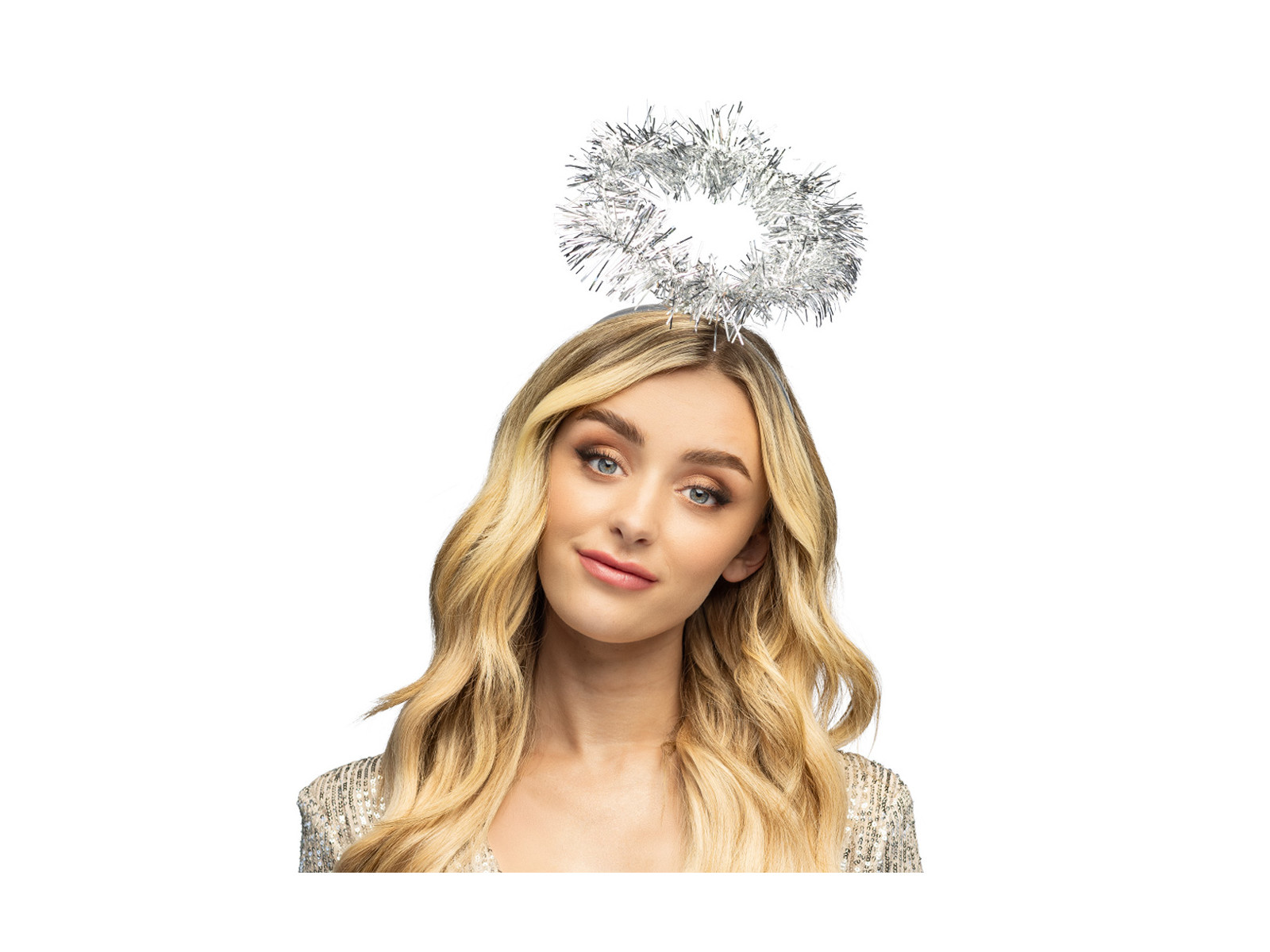 Opaska na głowę aureola srebrna z frędzlami