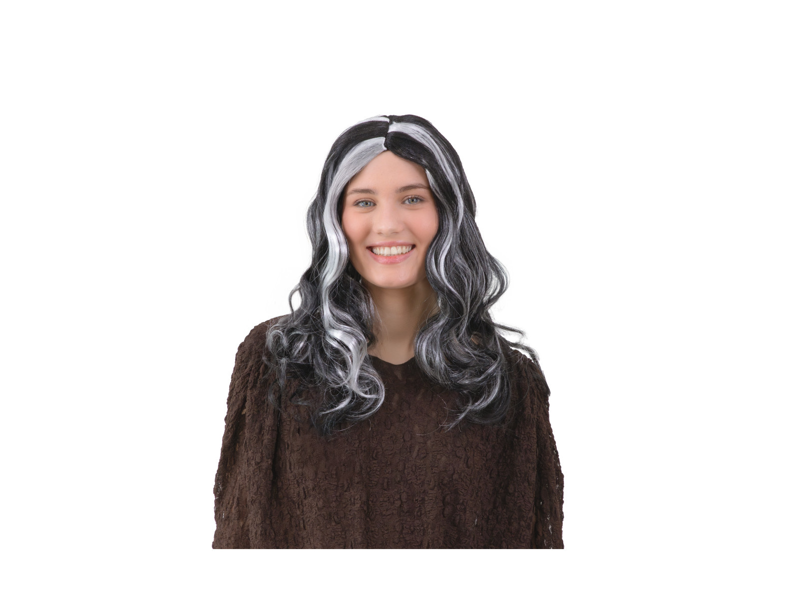 Peruka długa kręcona - biało-czarna - 1 szt.