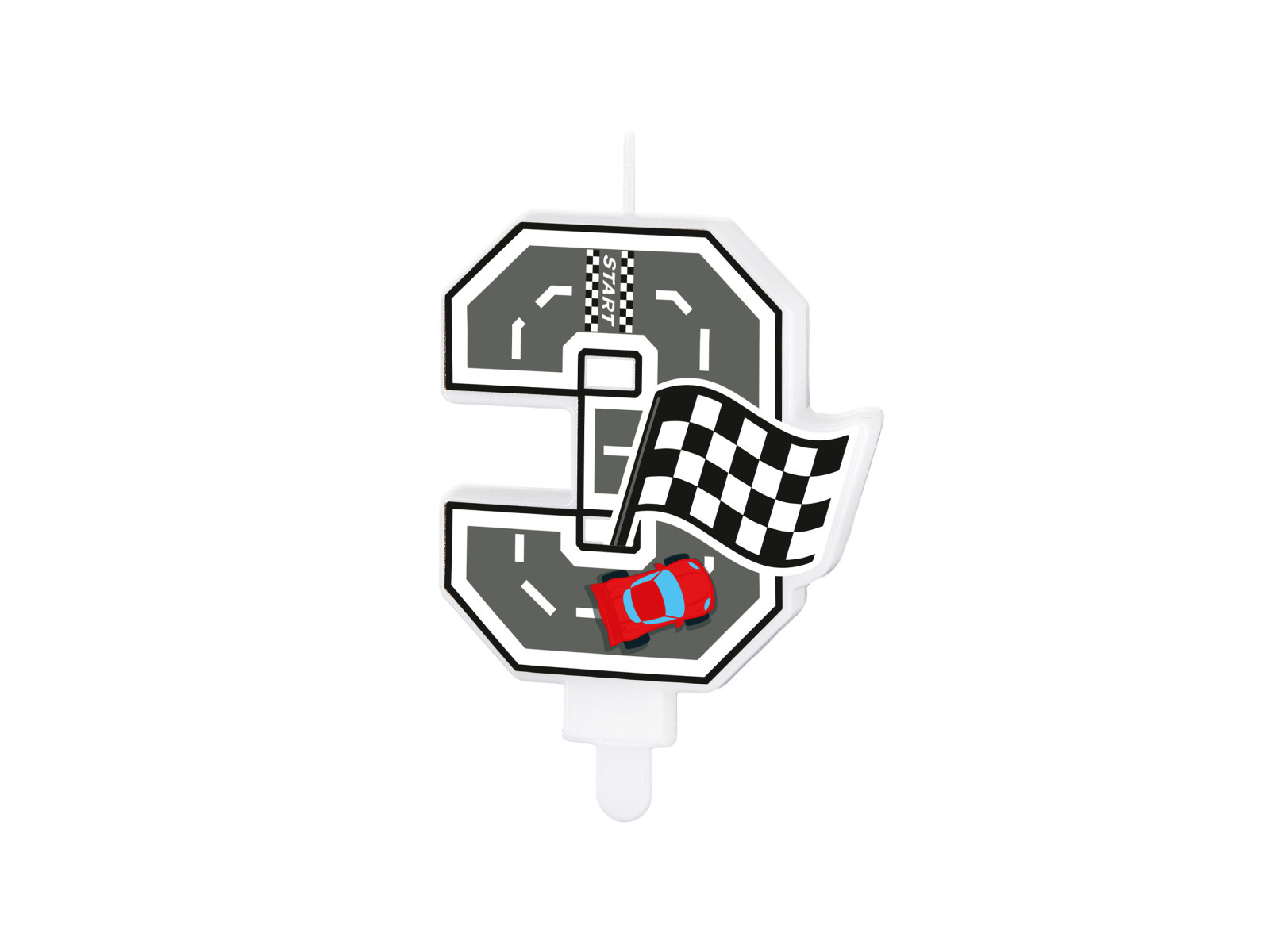Świeczka cyferka Wyścigówki - 3 - 7 cm - 1 szt.