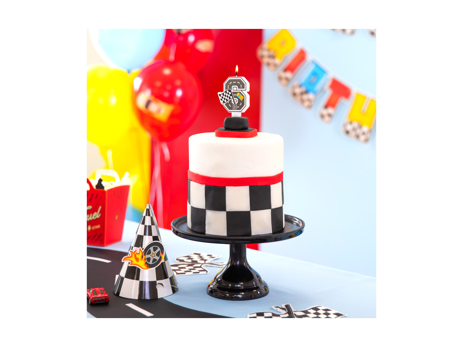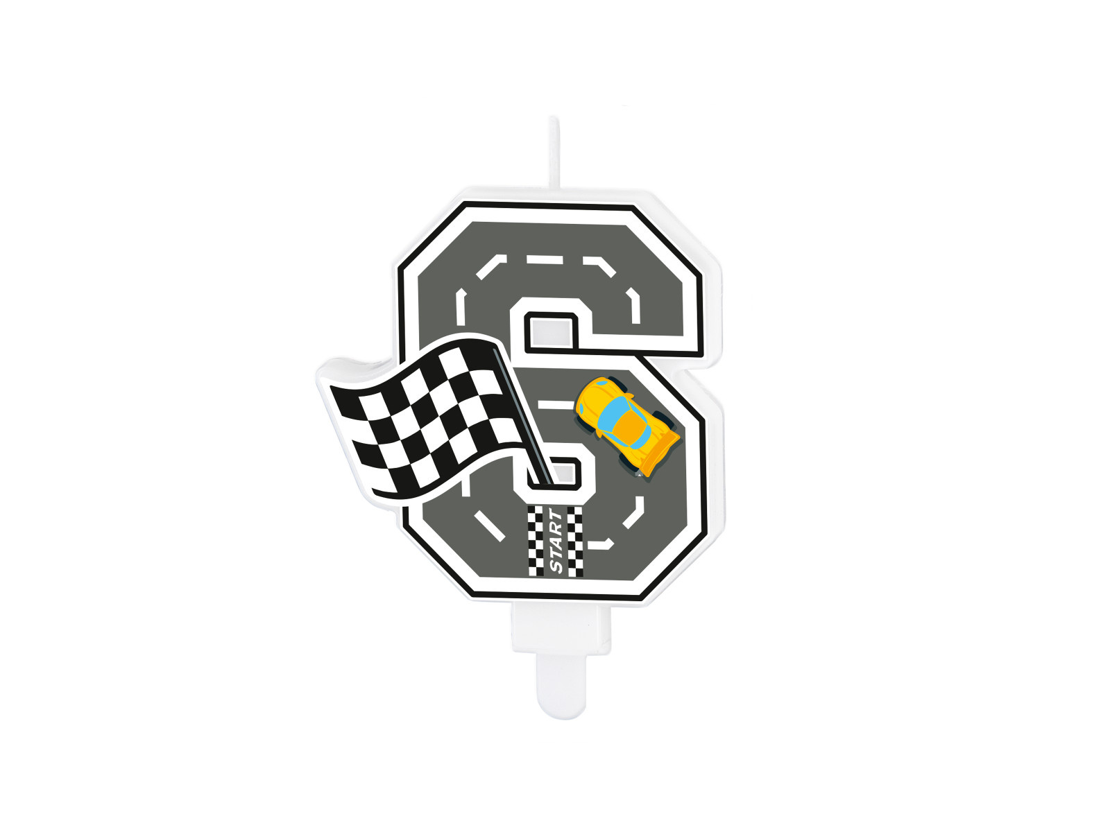 Świeczka cyferka Wyścigówki - 6 - 7 cm - 1 szt.